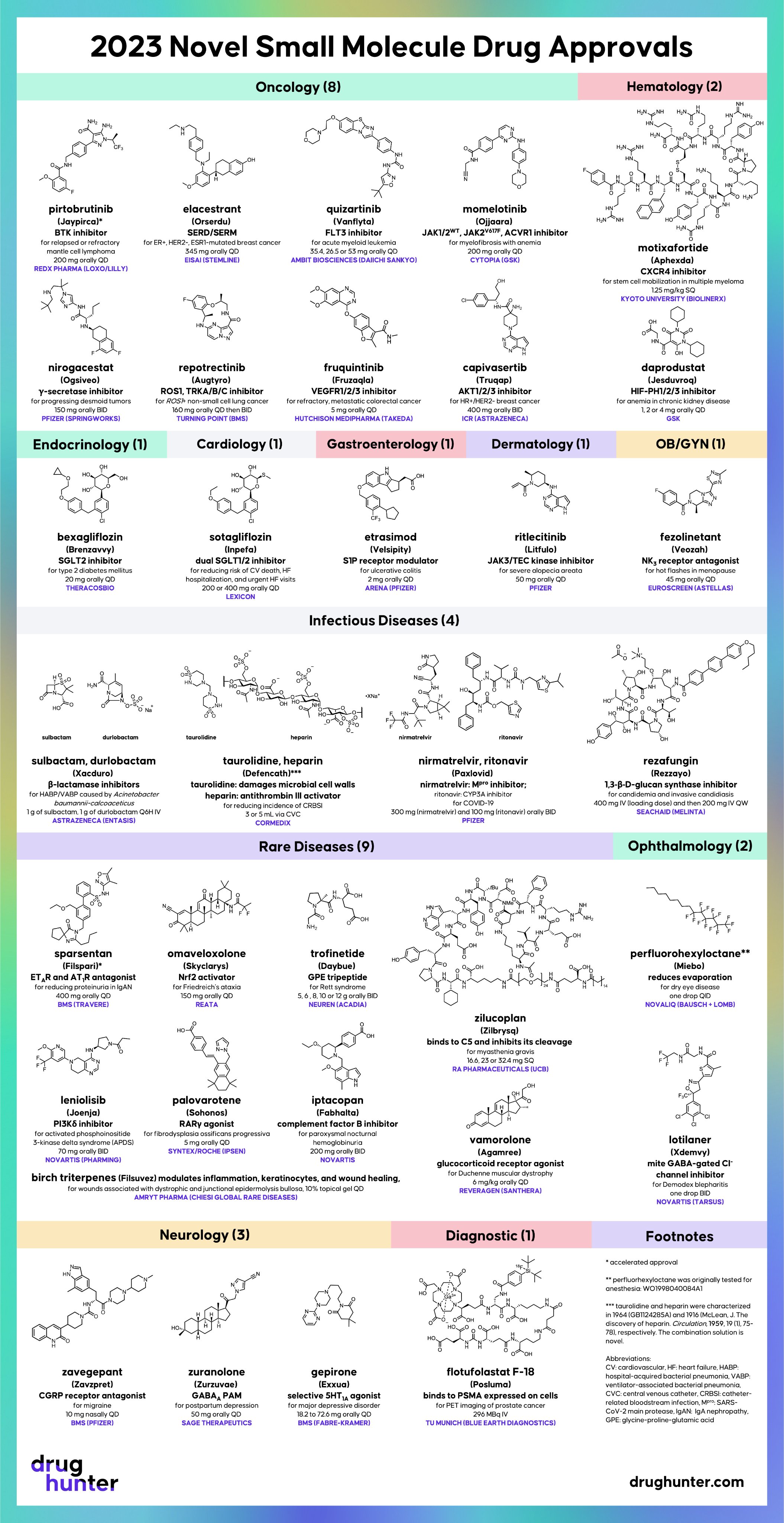 Source : www.facebook.comDennis Hu on X: “2023 Small Molecule Approvals! @drughuntersite A